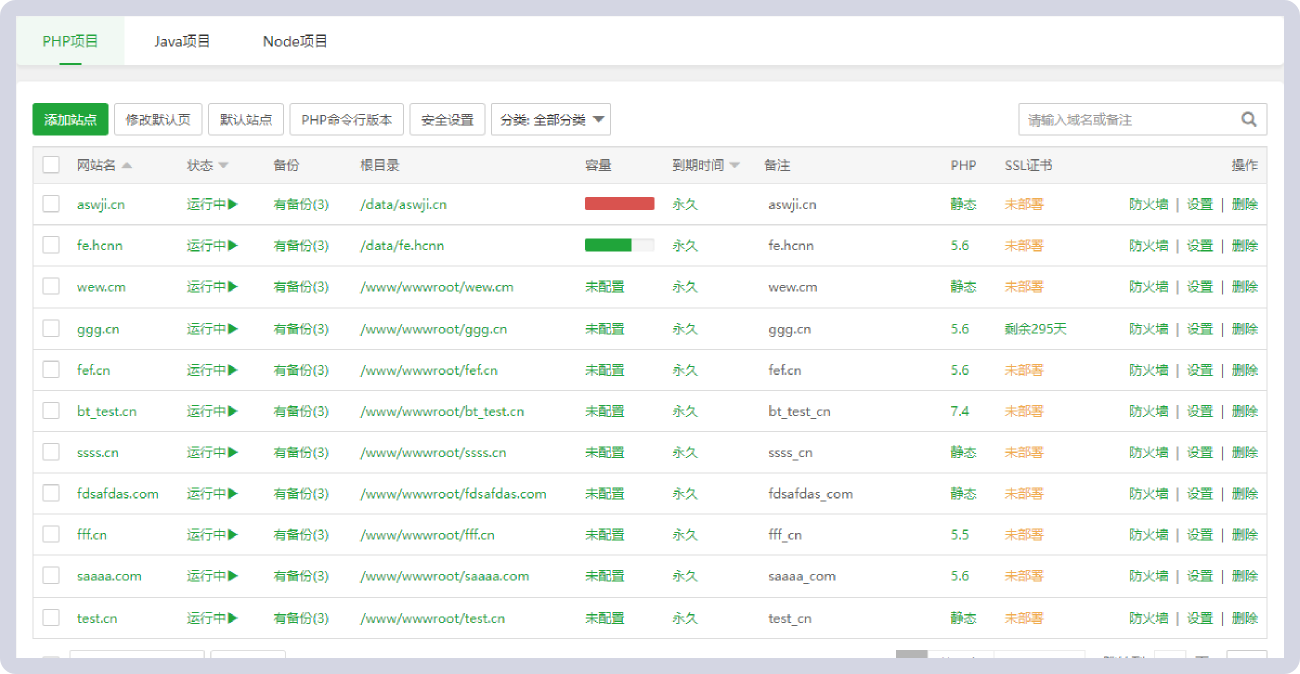 计划任务可按周期添加执行,支持SHELL脚本,提供网站、数据库备份以及日志切割。